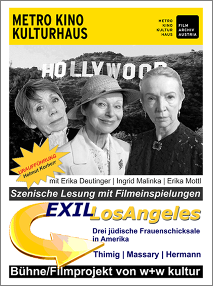 Diese ungewöhnliche Bühne-Film-Produktion, die im Rahmen der Veranstaltungsserie "Österreicherinnen in Hollywood" des Filmarchiv Austria im Metro-Kino stattfindet, erzählt die Geschichte von drei solchen Schicksalen, die sich auch in der Fremde nicht unterkriegen ließen.